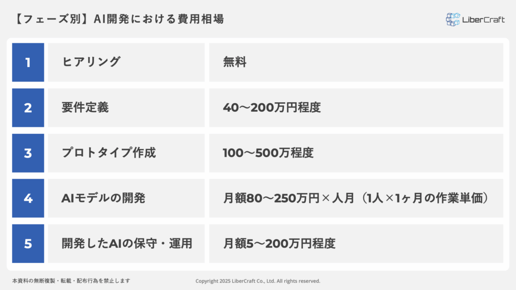 についても詳しく解説します。AI導入を検討している企業担当者の方は、費用計画の参考にしてください。