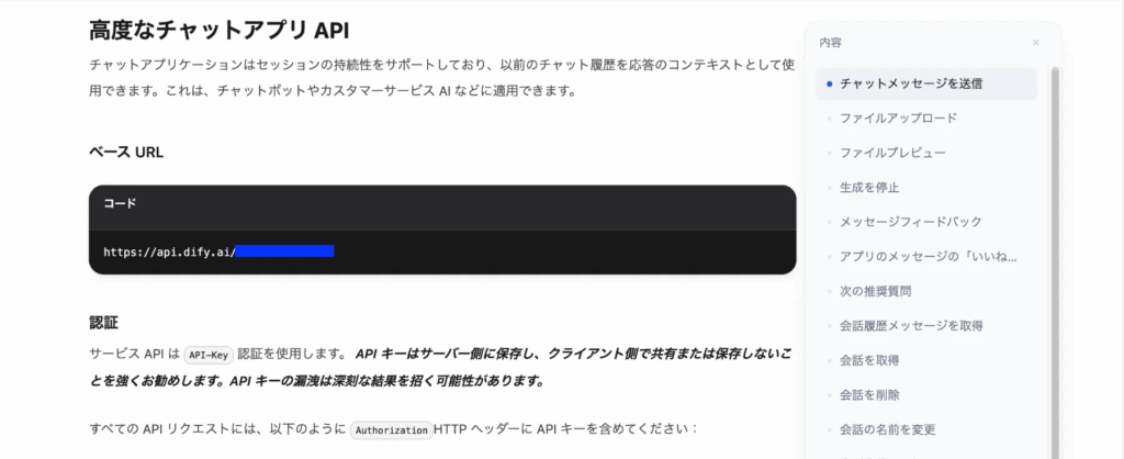 API経由での利用により、既存の社内システムやWebサービスにDifyの機能を組み込むことが可能で、