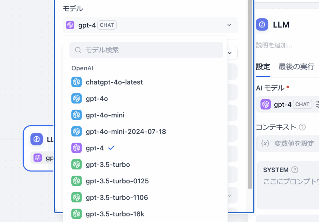 例えば、コスト効率を重視する場面では安価なモデルを、精度を求める場面では高性能モデルを選択するといった柔軟な運用が実現できます。簡単な用語説明にはGPT-3.5を使用し、複雑な故障解析にはGPT-4 Turboを使うといった具合に、処理の重さや費用対効果を考慮した最適なモデル選択が可能です。
