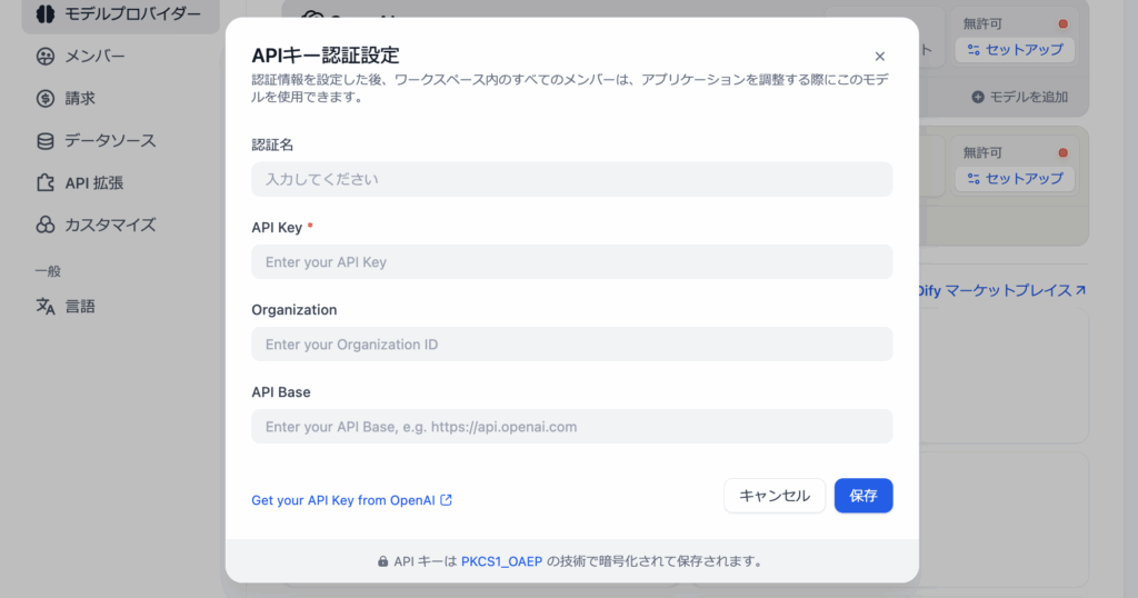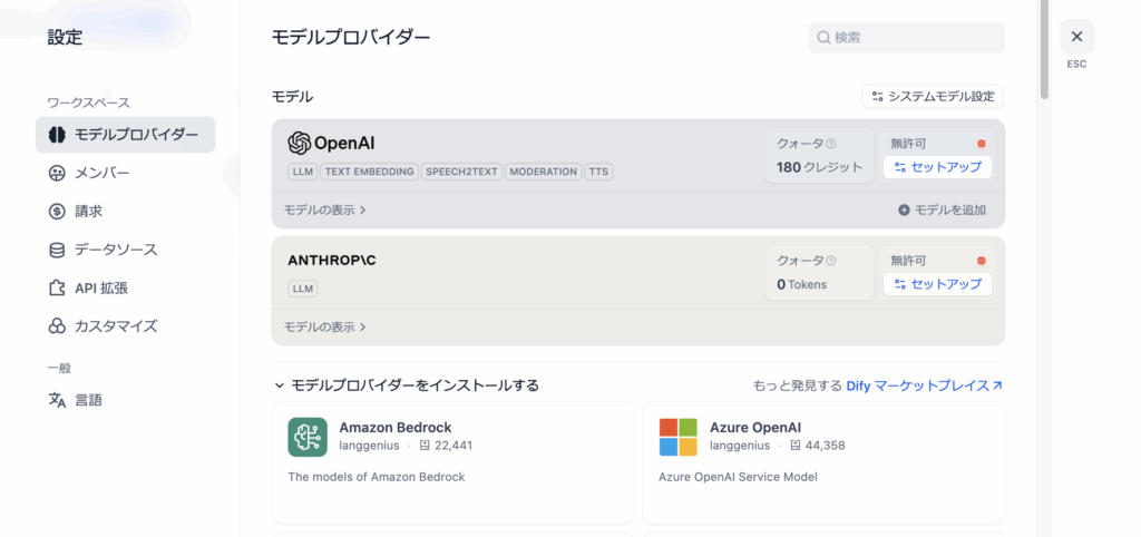 ここからはモデルプロパイダーを設定して、実際にAPIキーを設定していきます。
