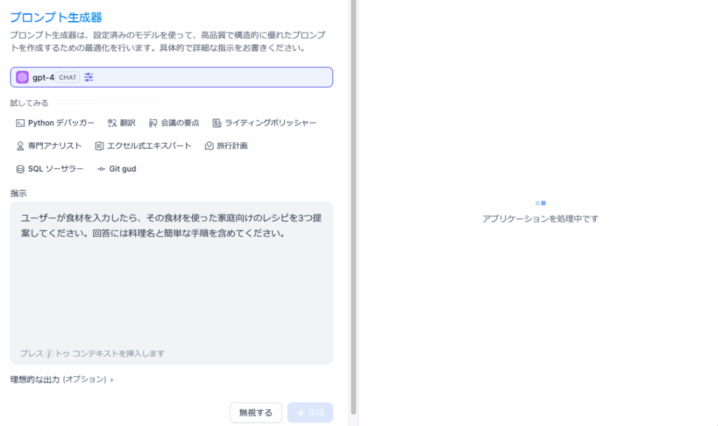 今回は正しく生成されました。ここで期待した答えが返ってこなければ、プロンプトを修正する必要があります。
