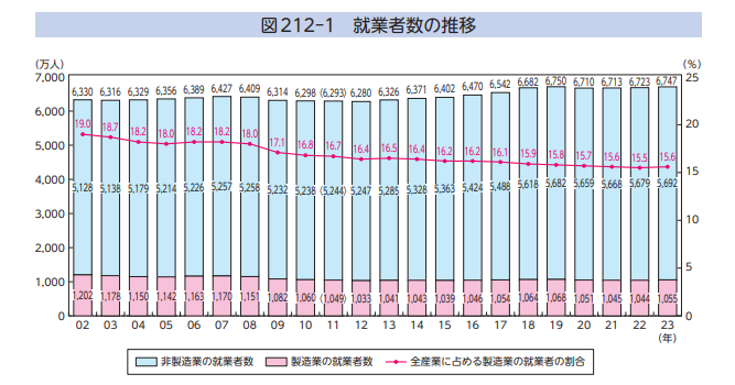 製造業は、顧客ニーズの変化が早い市場に対応するため、短納期での生産や多品種少量生産など、現場の負担が増え続けています。しかし、製造分野の働き手は年々減っており、経済産業省の統計によれば、2002年から2023年の間に約150万人もの人材が減少しています。