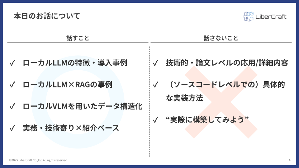 本資料は、「LLMは、クラウドか?ローカルか? RAG AI Ready Dataで探る最適なAI基盤設計」と題したウェビナーの講演資料です 。