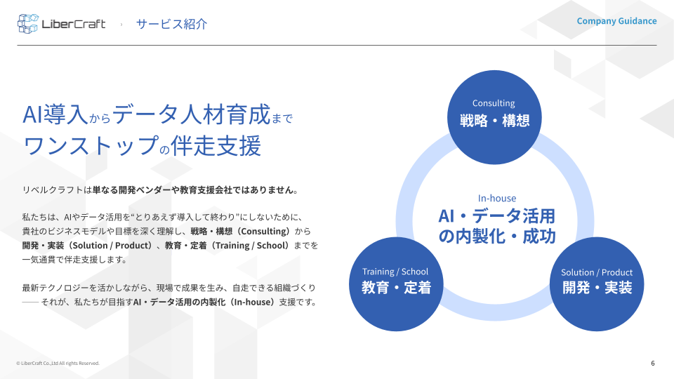 リベルクラフトの提供サービスや支援事例について、資料でご覧いただけます。