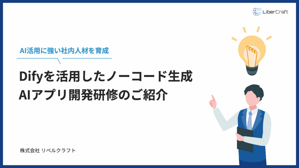 本資料は、AI活用に強い社内人材を育成するための「Difyを活用したノーコード生成AIアプリ開発研修」のご紹介資料です
